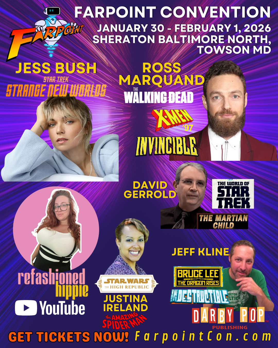 You can also bookmark this page, and/or follow us on Facebook (Farpoint Convention), Instagram (@FarpointFoundation) and Twitter (@FarpointCon) to receive updates as they are published.